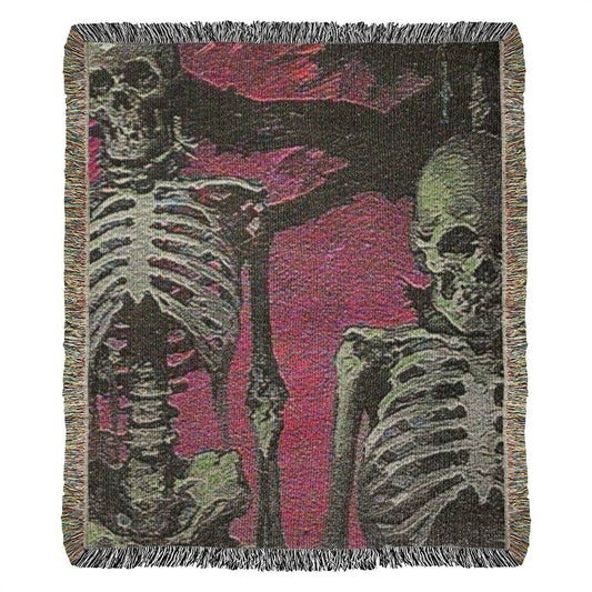 the dark vibe with our 50·60 inc Heirloom Woven Blanket.Handwoven with precision,thisbblanket combines moody tones with a bold,edgy perfect for adding that mysterious touch to your space.Use it as acozy throw,a striking bedspread,or even gothic-inspired wall art.Crafted for lasting comfort, this is amust-have for anyone who loves atouch of darkness in their decar. Get yours and wrap yourself in style.
